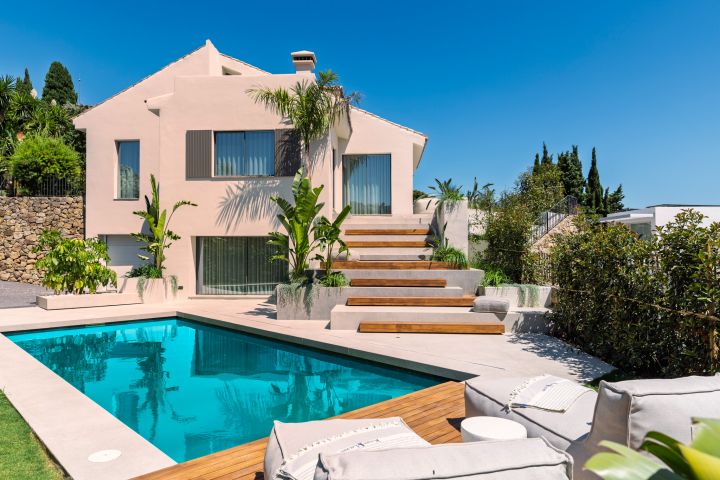 Located in the prestigious Golf Valley of Nueva Andalucía, Centauro 15 is an exceptional villa that blends contemporary architecture with Balinese boho inspiration and lush tropical aesthetics. This unique property was completely redesigned and renovated in 2025 to offer an immersive living experience, where natural light, high-quality materials, and a sensory connection with the landscape take center stage.